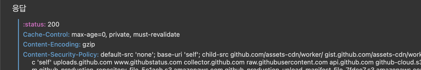 응용 1 : 강의시간 자료 중에 리스폰스 헤더필드 해석