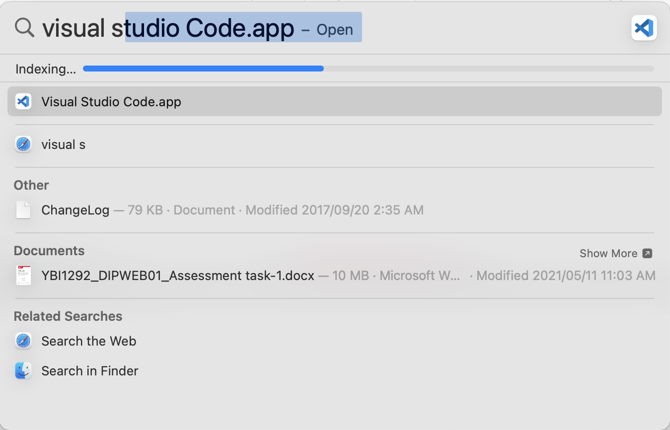Spotlight 에서 visual studio code 검색이 안됨 🤦🏻♀️