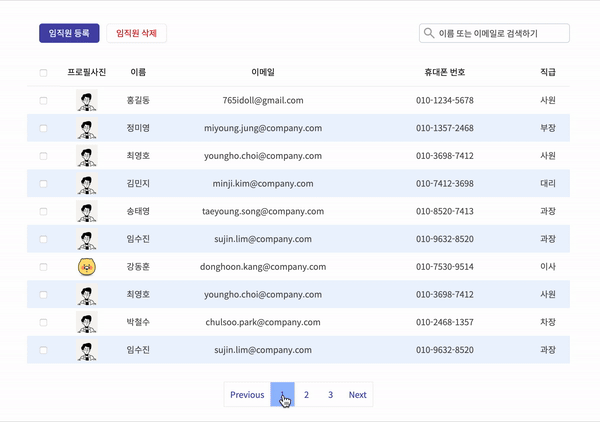 - 직원목록 나오는 테이블과 페이지네이션이 연결됨