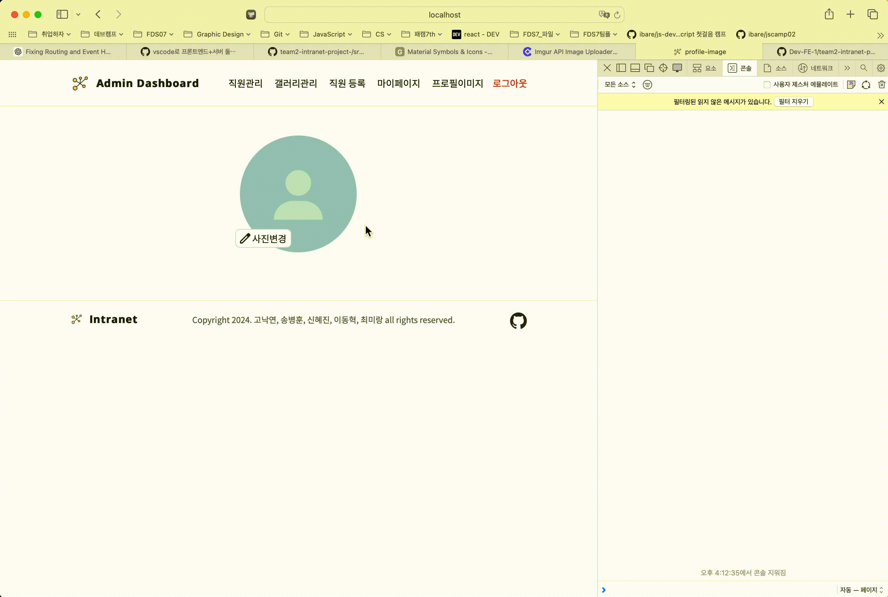 - 프로필 사진 컴포넌트를 헤더 메뉴링크에 붙여 테스트 중이었다